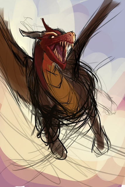 So the night prior I announced I would paint a fantasy image in the morning. That next morning I woke up at 5 am(much different from the usual 1 pm of summertime) with a splitting headache, one that would not go away even after double-dosing on Advil. But I had a promise to fulfill, I was going to paint something fantastic. And after thinking about it, I realized that if I was going to do something completely new to me, why stick with the same subject matter(generic fantasy paintings are usually scantily-clad women, not much different from my anime work)? So trying something new, I've taken on the challenge of a dragon.
